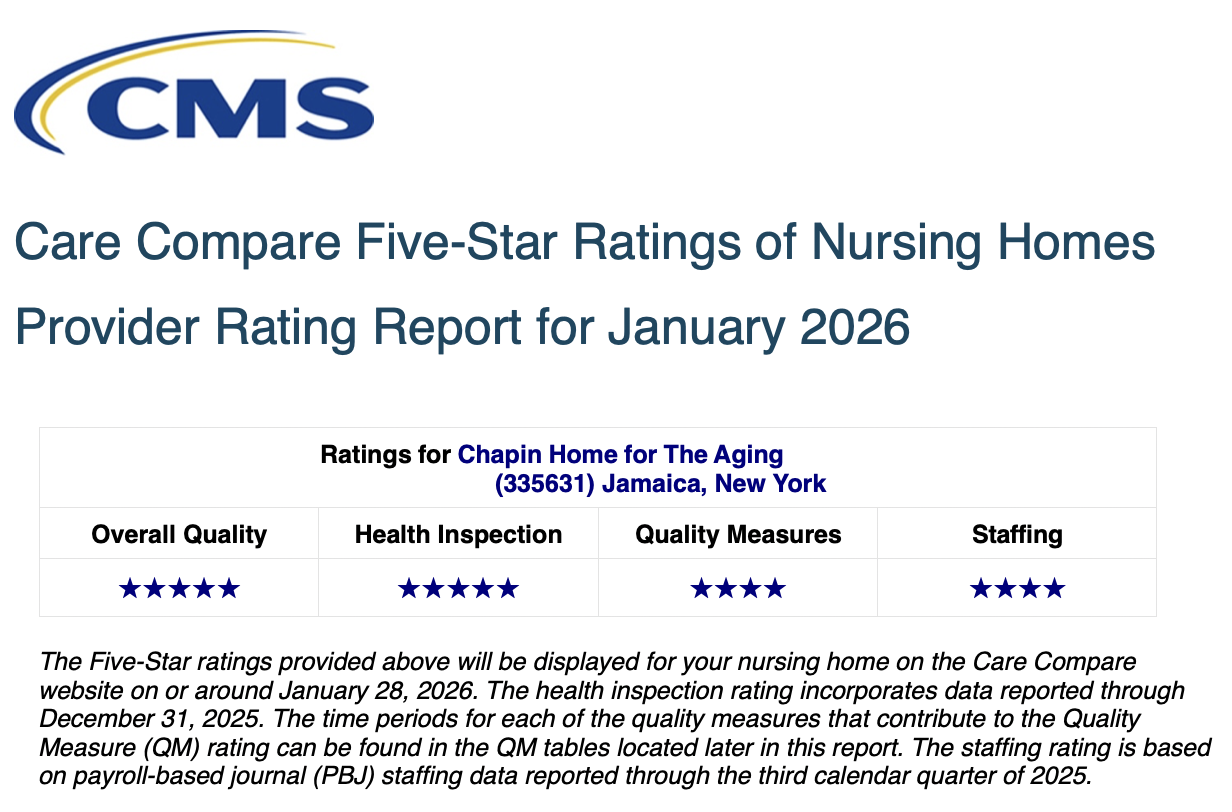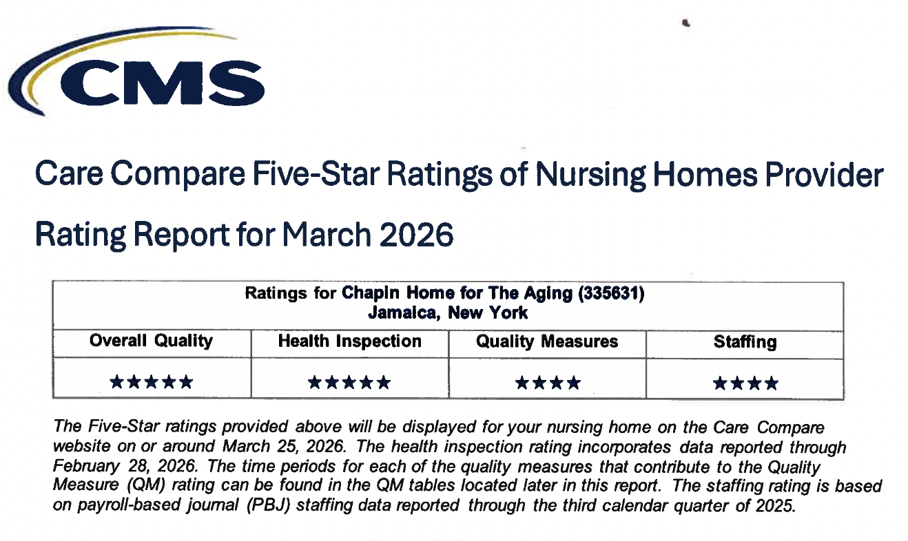 With over 155 years dedicated to improving the lives of seniors, Chapin Home for the Aging is an exceptional skilled nursing home in Queens providing both short-term rehabilitation and long-term residential care. At Chapin Home our mission is you; our patients, residents, and families we serve. We’re here to provide a true home for seniors, while meeting their physical, emotional, cognitive, and social needs. And as a not for profit skilled nursing home, we’re constantly reinvesting to improve the experience of our residents and the people who love them most.